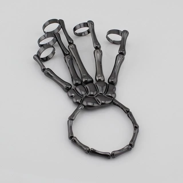 Bone This Way Skeleton Bracelet cuz yer a freak underneath it all. Bonez don’t lie in this creepy chic bracelet that has skeleton fingers with attached rings and a stretchy bones chain wrist cuff.