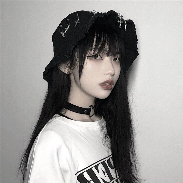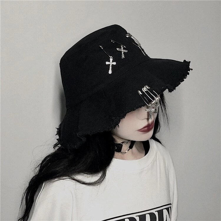 Crossed Safety Pin Bucket Hat got ya lookin’ so deadly. Serve ‘em bad bish vibez in this bucket hat that has sikk safety pins pierced hardware.