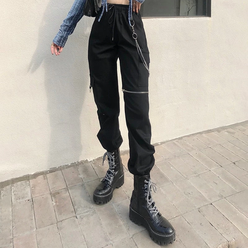 Break The Chain Cargo Pants the cycle ends with you, babe. These bad AF cargo pants has ankle zip, a sikk chain, side pockets, elasticized ankle cuffs and an elastic waistband.