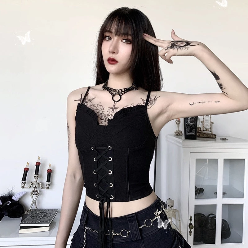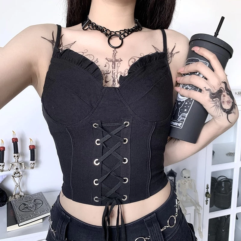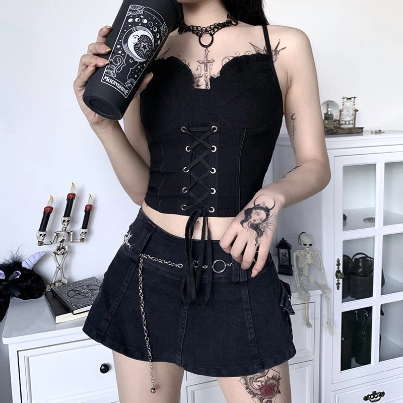 Spellcast Lace Up Corset Top… Keep your witchery contemporary in this corset top featuring a sweetheart neckline, cropped fit, adjustable lace-up front and adjustable straps.