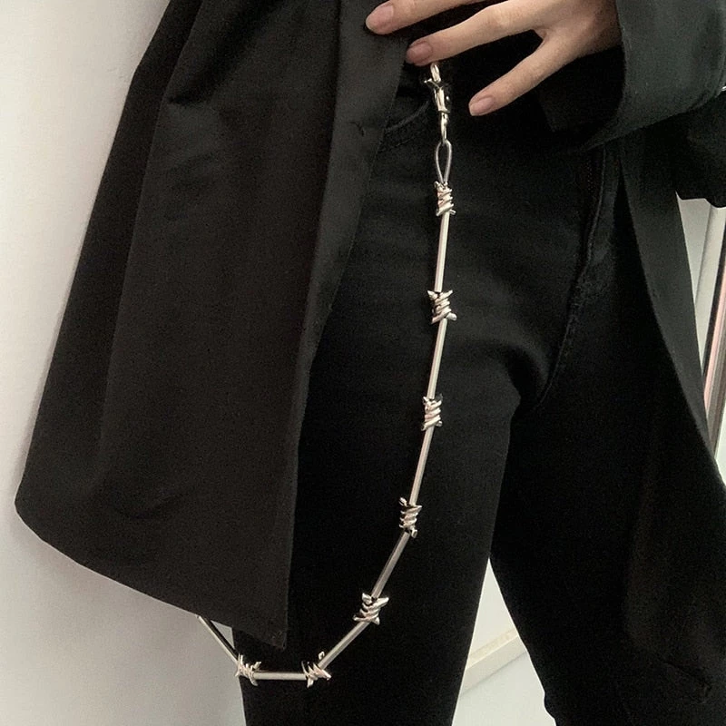 Cut You Up Chain Jean Chain cuz you’re a tough cookie, bb! Show ‘em what you’re made of with this jean chain that has a barbed wire construction and clasp closures on either end to attach to yer belt loops.