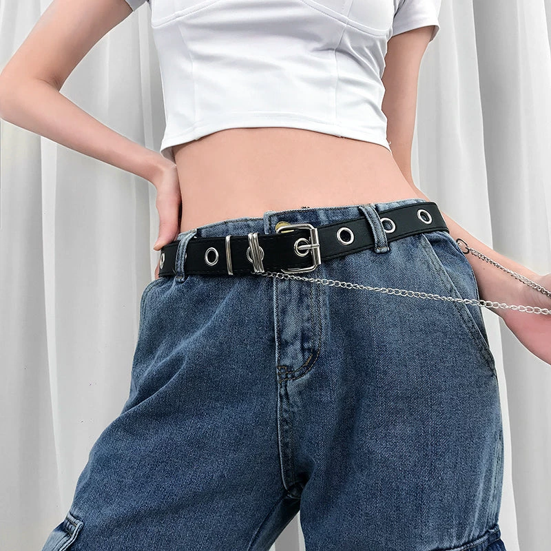 Dangerous Default Chain Belt gotcha lewkin’ naughty by nature. You were born bad with this dope lil chain belt that has chrome grommet N’ a danglin’ chain hardware.
