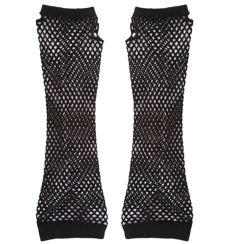 Widow Safe In My Skin Fishnet Gloves. These fingerless gloves have a stretchy fishnet construction.