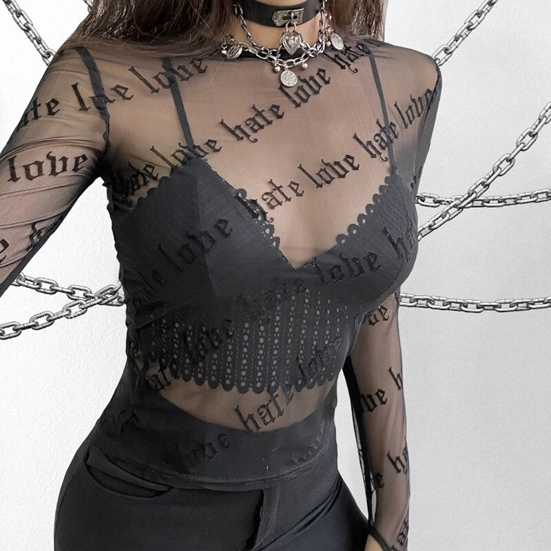 Hate Love You Mesh Top cuz it’s complicated baby. Make it official in this sikk sheer mesh top that has ‘hate love’ all ova in OG letters, a round neck N’ long sleeve with thumb hole deetz.