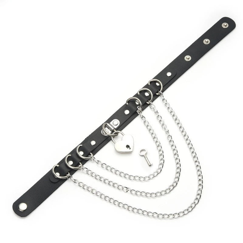 Nightmares Of Love Chain Choker because your heart is telling a different story. This vegan leather choker has chain hardware all over and a heart shaped pendant on it.