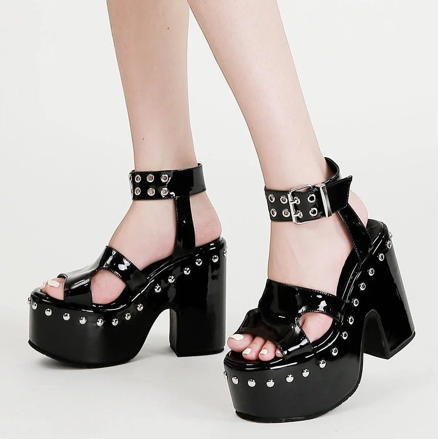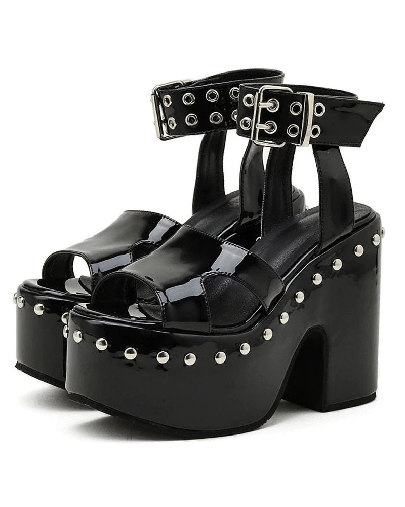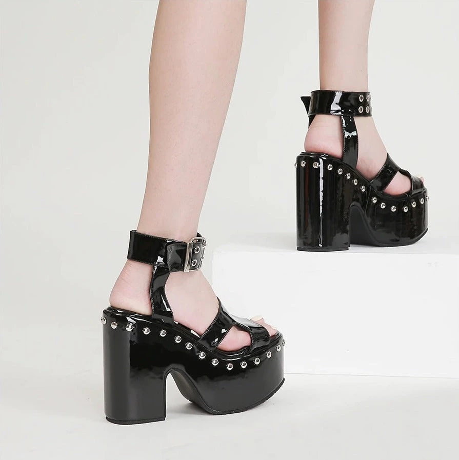 Run The World Sandals cuz you and ya girls got it on lock! Show ‘em what you’re made of in these baddie platform sandals that have a patent vegan leather construction, chunky heels and platforms and adjustable buckle closure.