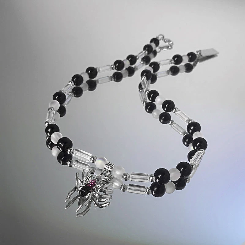 Spider Secret Beads Choker your senses are tingling. This beads necklace has a spider pendant and clasp closure.