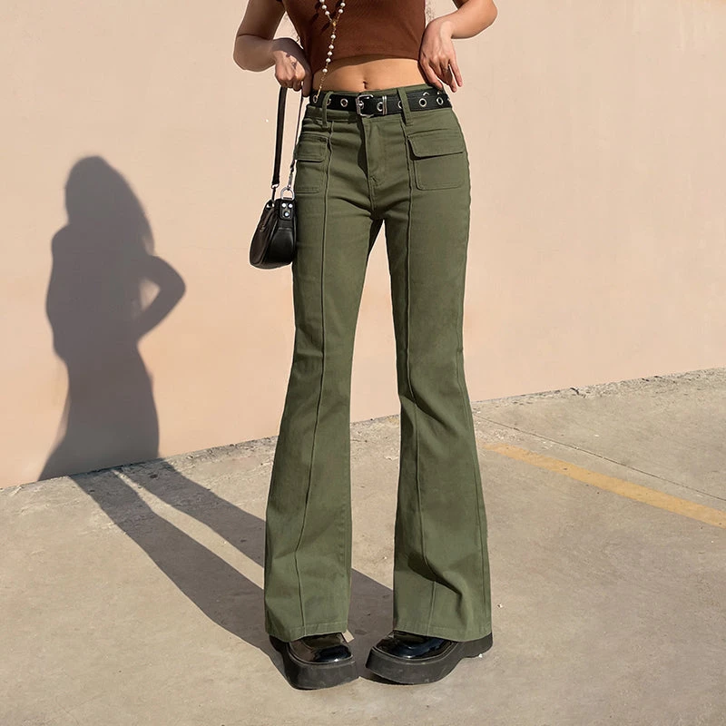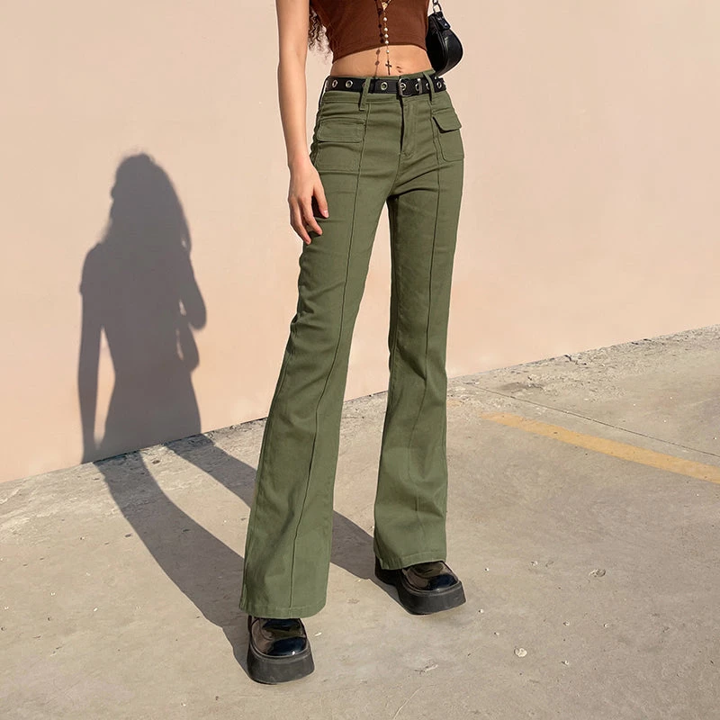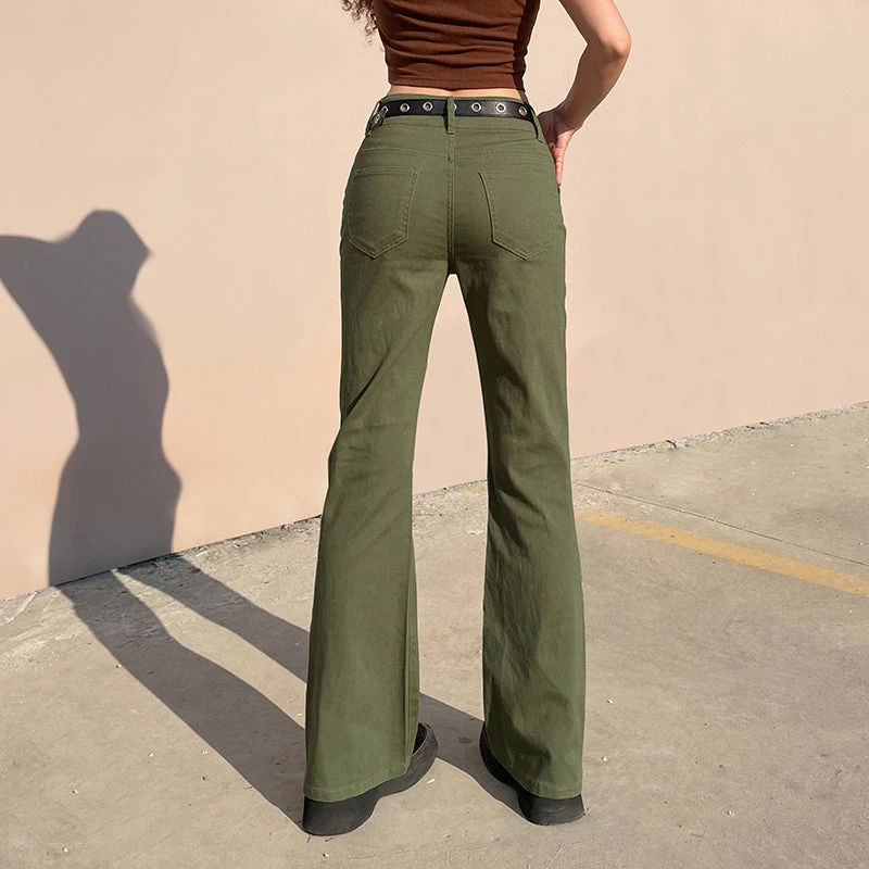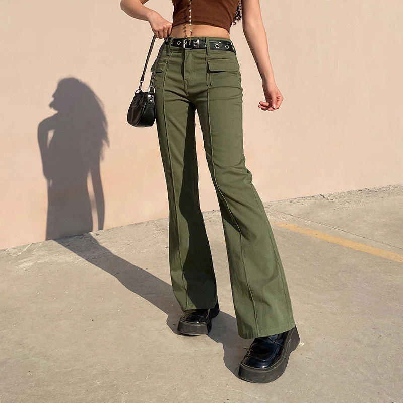 Don’t You Forget Flare Pants. These green pants has a mid rise waistline, a flare fit and pockets in front and back.